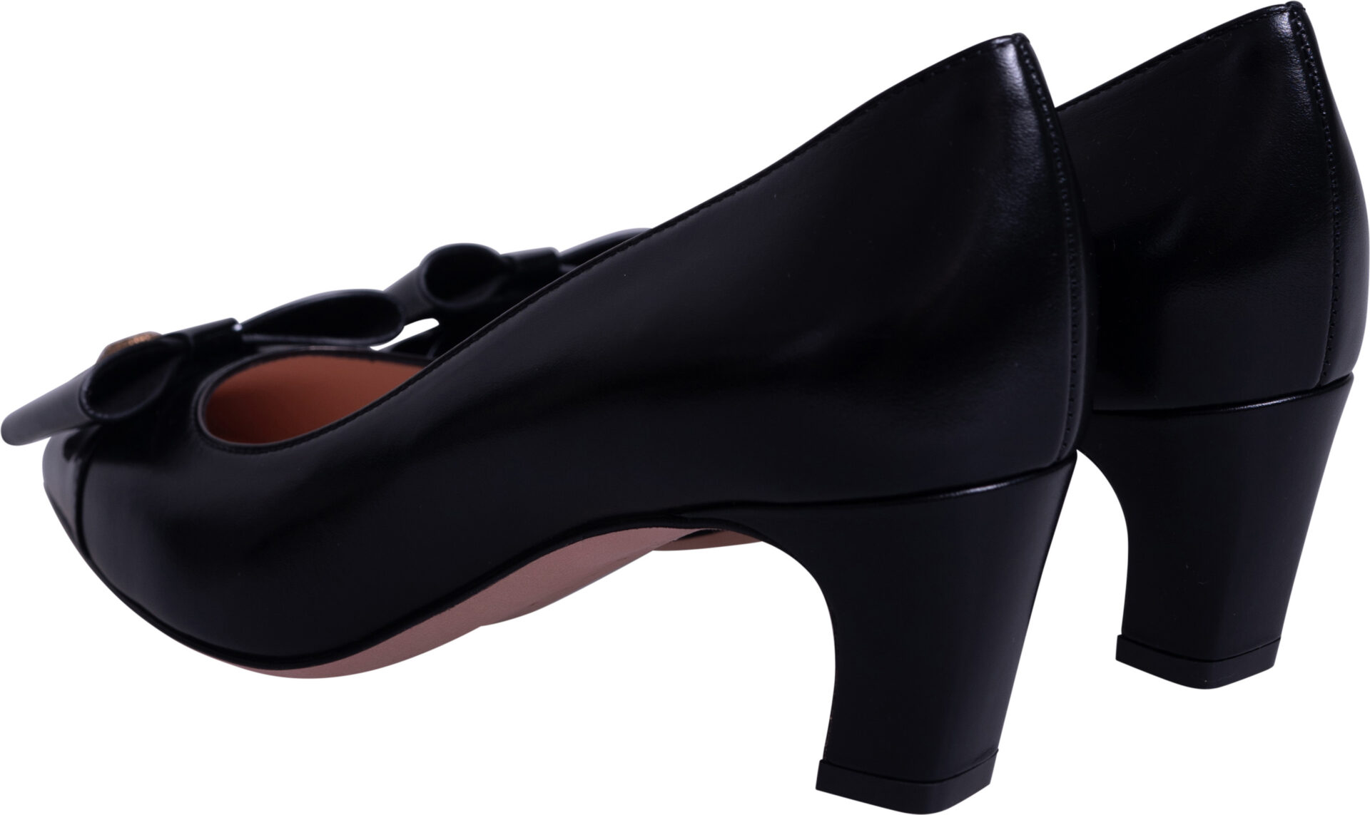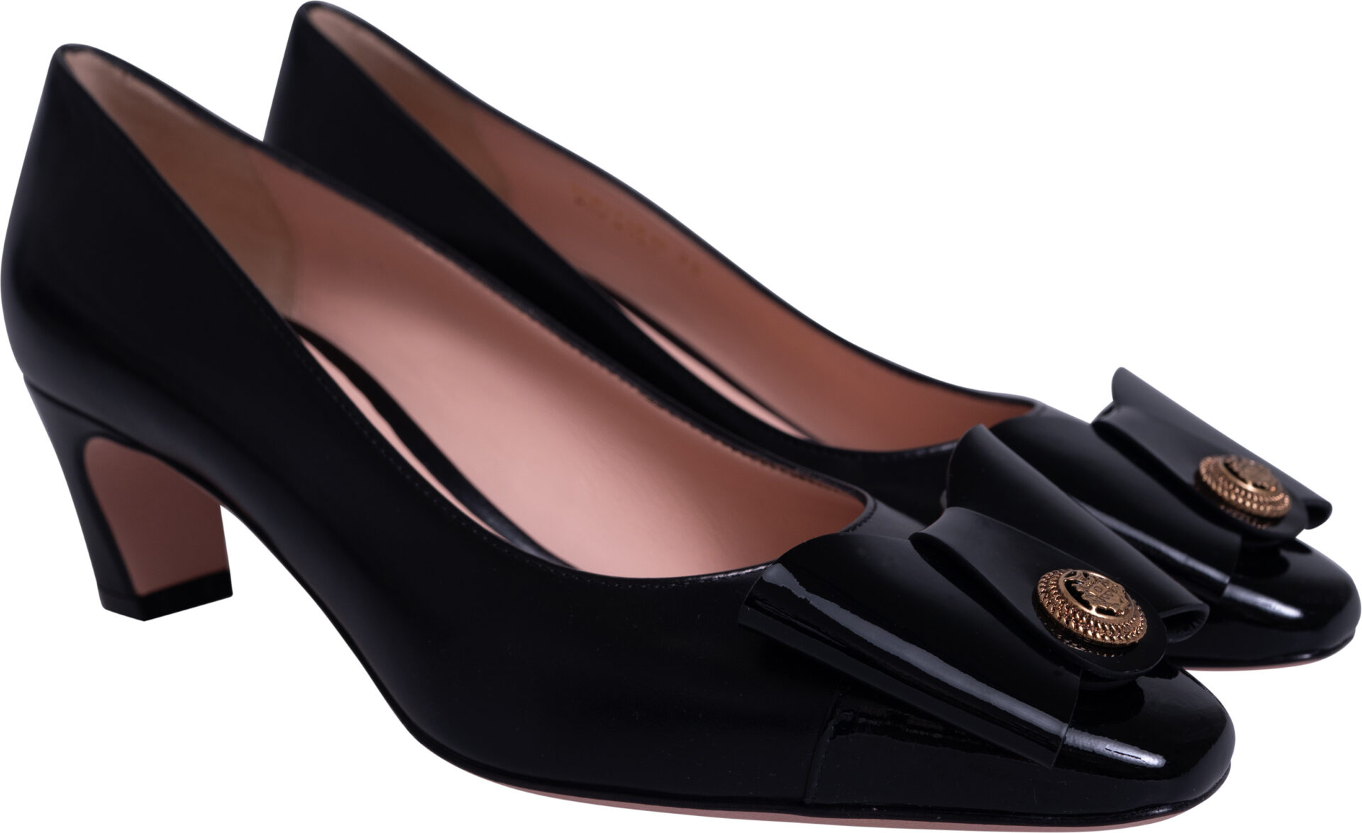 Smooth leather pumps with patent leather bow