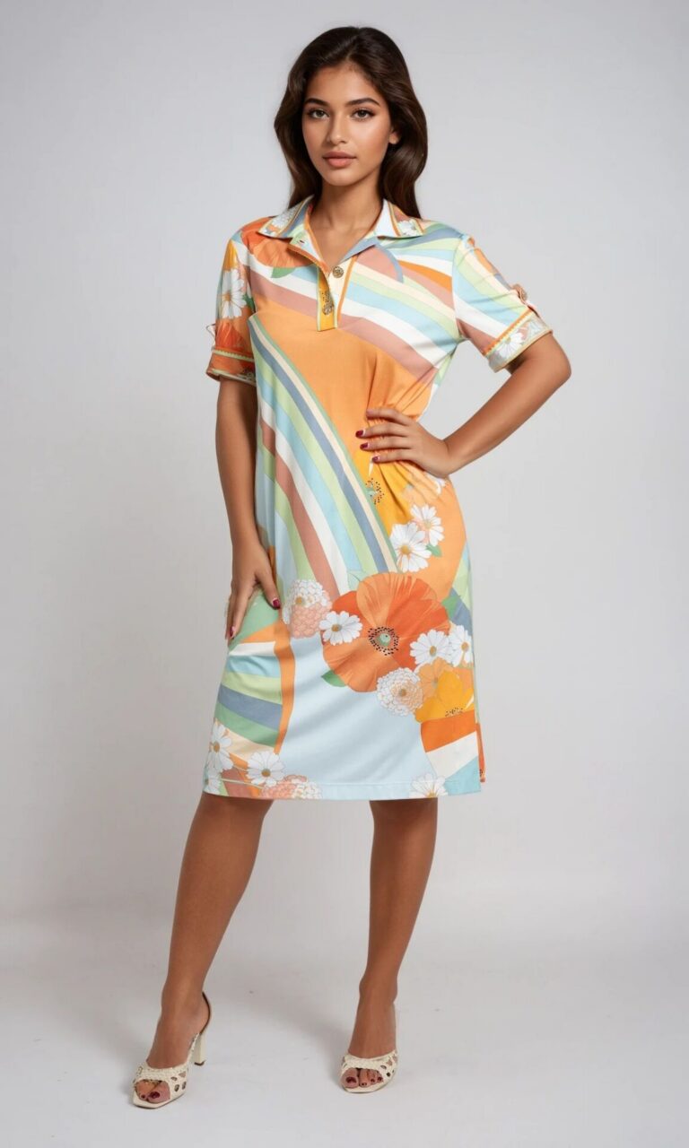 Knielanges Jerseykleid mit floralem Musterprint und asymmetrischem Detail