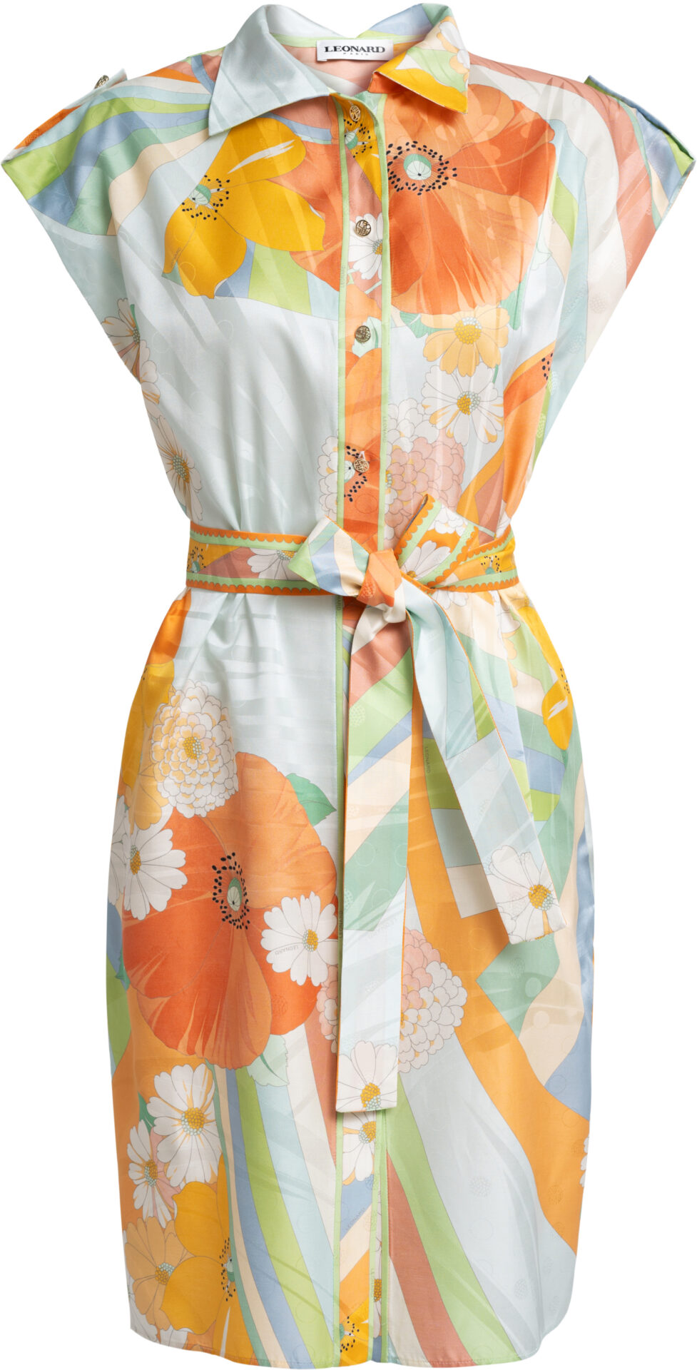 Die weiten, angeschnittenen Ärmel verleihen dem Kleid eine entspannte Eleganz, während der Bindegürtel die Taille weich definiert und die Silhouette individuell formbar macht. Ob für stilvolle Daywear, besondere Anlässe oder gehobene Resort-Looks – dieses Kleid überzeugt mit raffinierter Leichtigkeit und exklusivem Print-Statement.