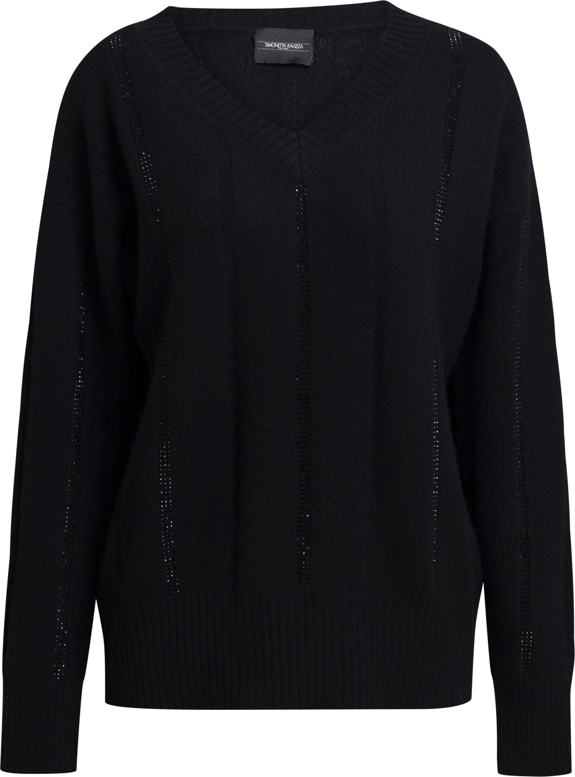 Cashmere Pullover mit V-Ausschnitt und dezenten Strasssteindetails