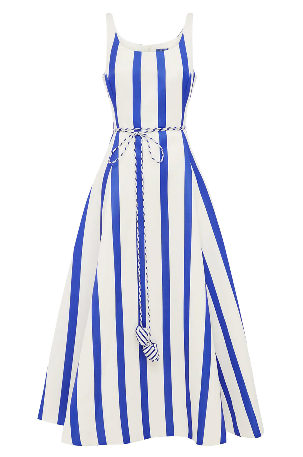 Die Taille wird von einer feinen Kordel mit dekorativen Enden markiert, die sich vorne zu einer Schleife binden lässt und dem Look einen maritimen Touch verleiht. Der weit schwingende Rock umspielt die Beine bei jedem Schritt und macht das Kleid zum idealen Begleiter für Urlaubsabende, Garden-Partys oder City-Looks an warmen Tagen.