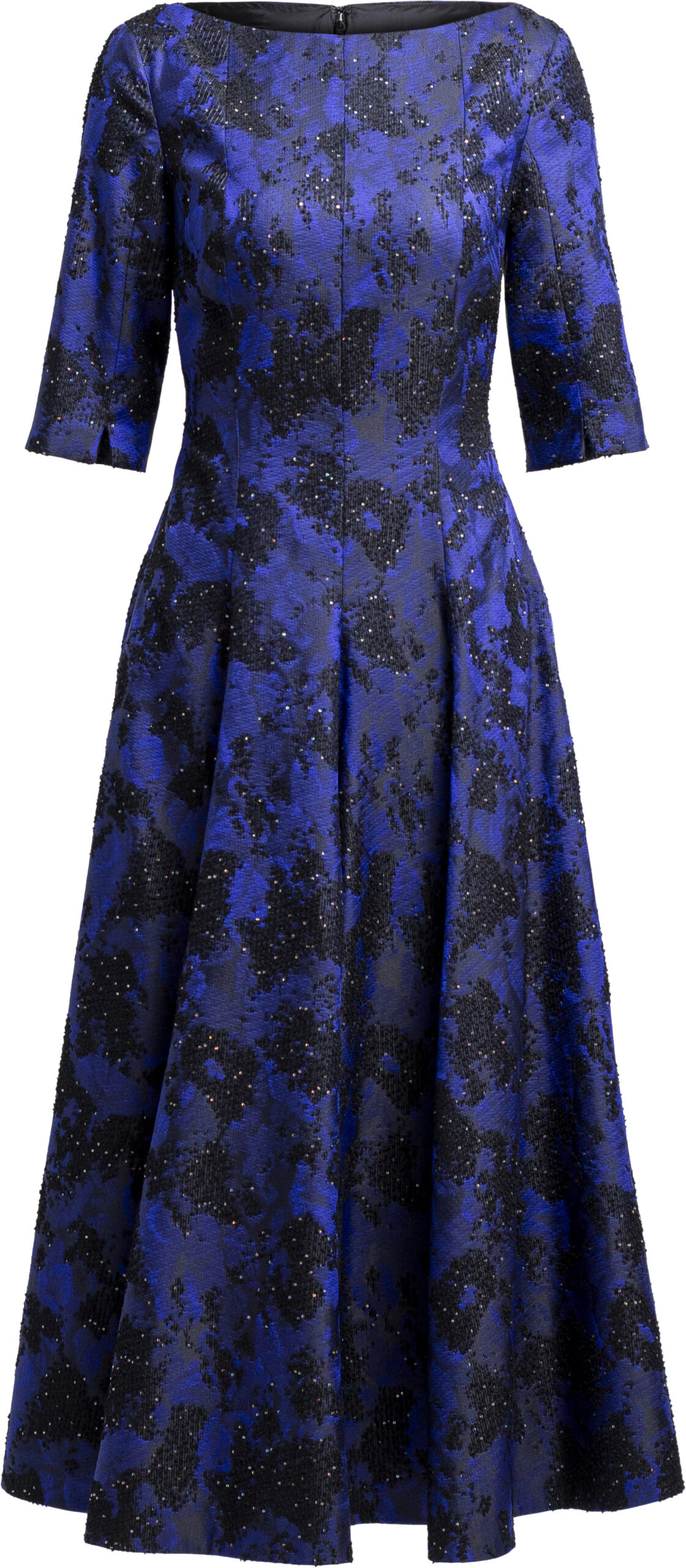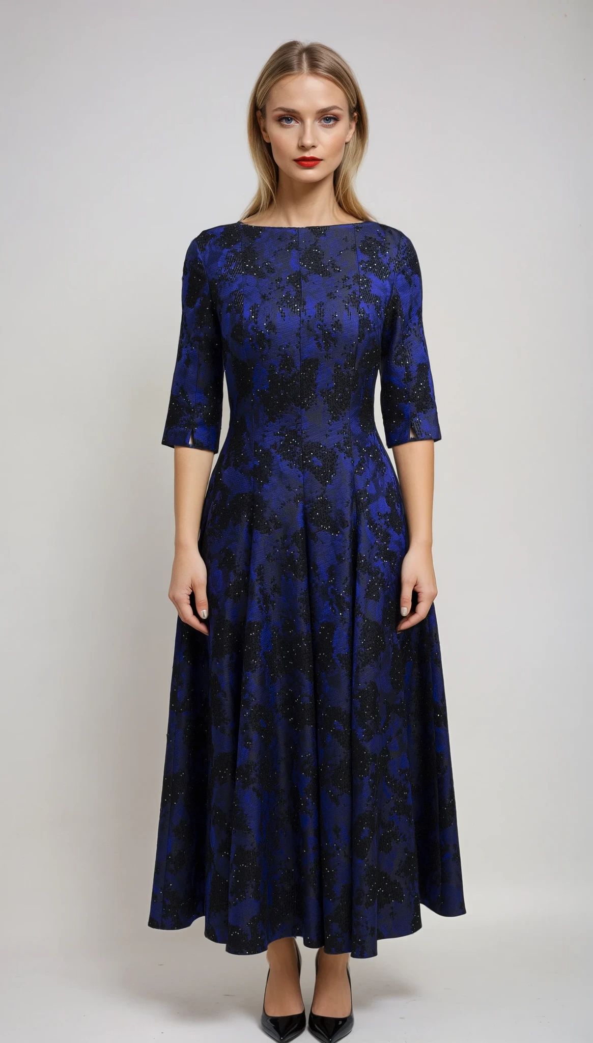 Knöchellanges Cocktailkleid mit langem Arm, Strukturmuster und dezenten Paillettendetails