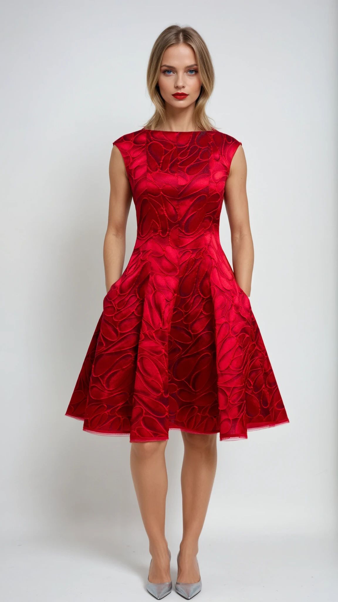 Kurzes Cocktailkleid mit floralem Strukturmuster