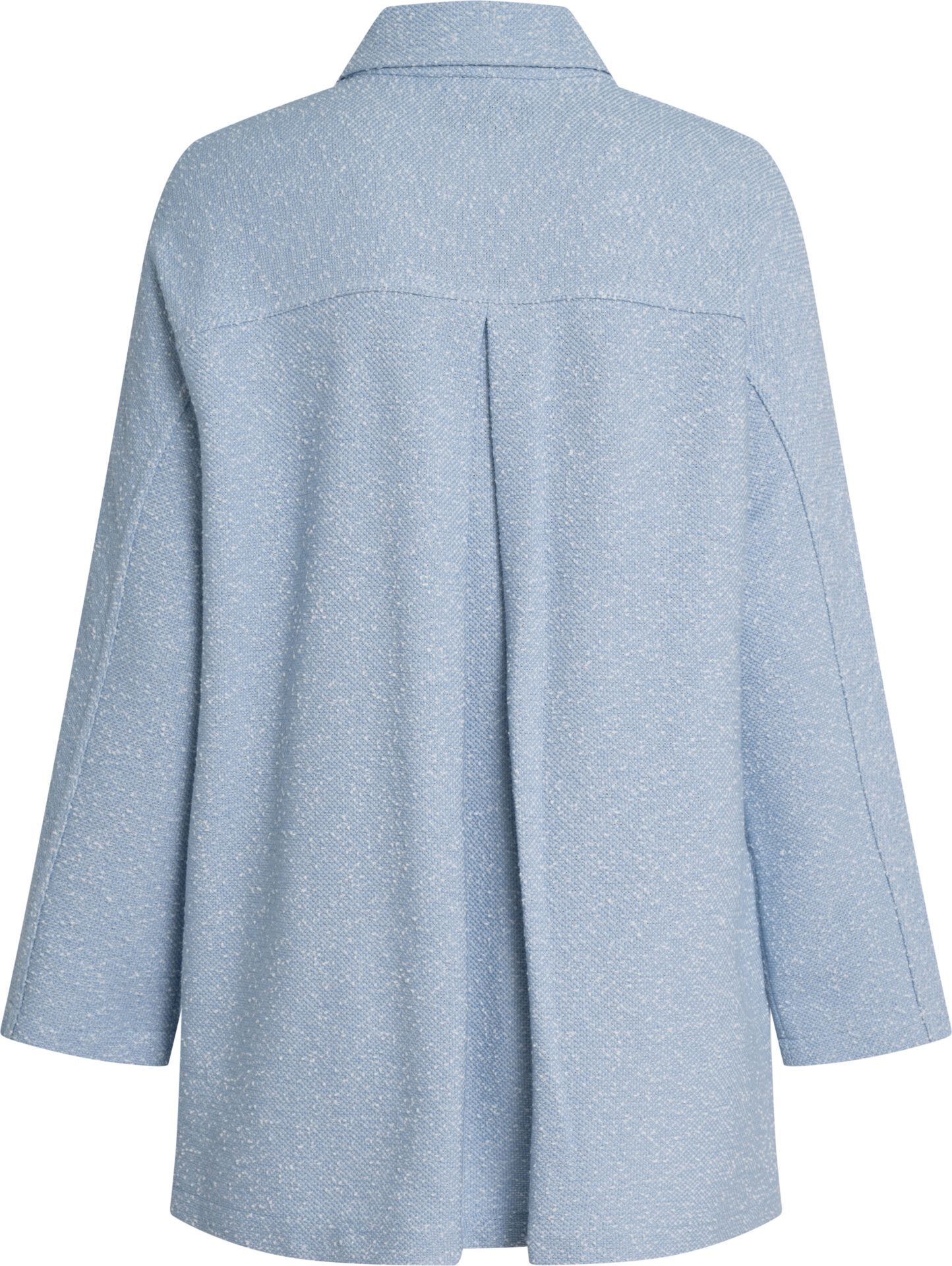 Das Design ist bewusst reduziert gehalten und setzt auf hochwertige Proportionen: überschnittene Schultern, lange Ärmel und eine leicht verlängerte Länge sorgen für einen eleganten, entspannten Look. Eine Rückenpasse mit Falte unterstützt den fließenden Fall und erhöht den Tragekomfort. Ideal für Business, City-Styling und stilvolle Übergangs-Looks – als leichter Mantelersatz über Blusen, Strick oder Kleidern.