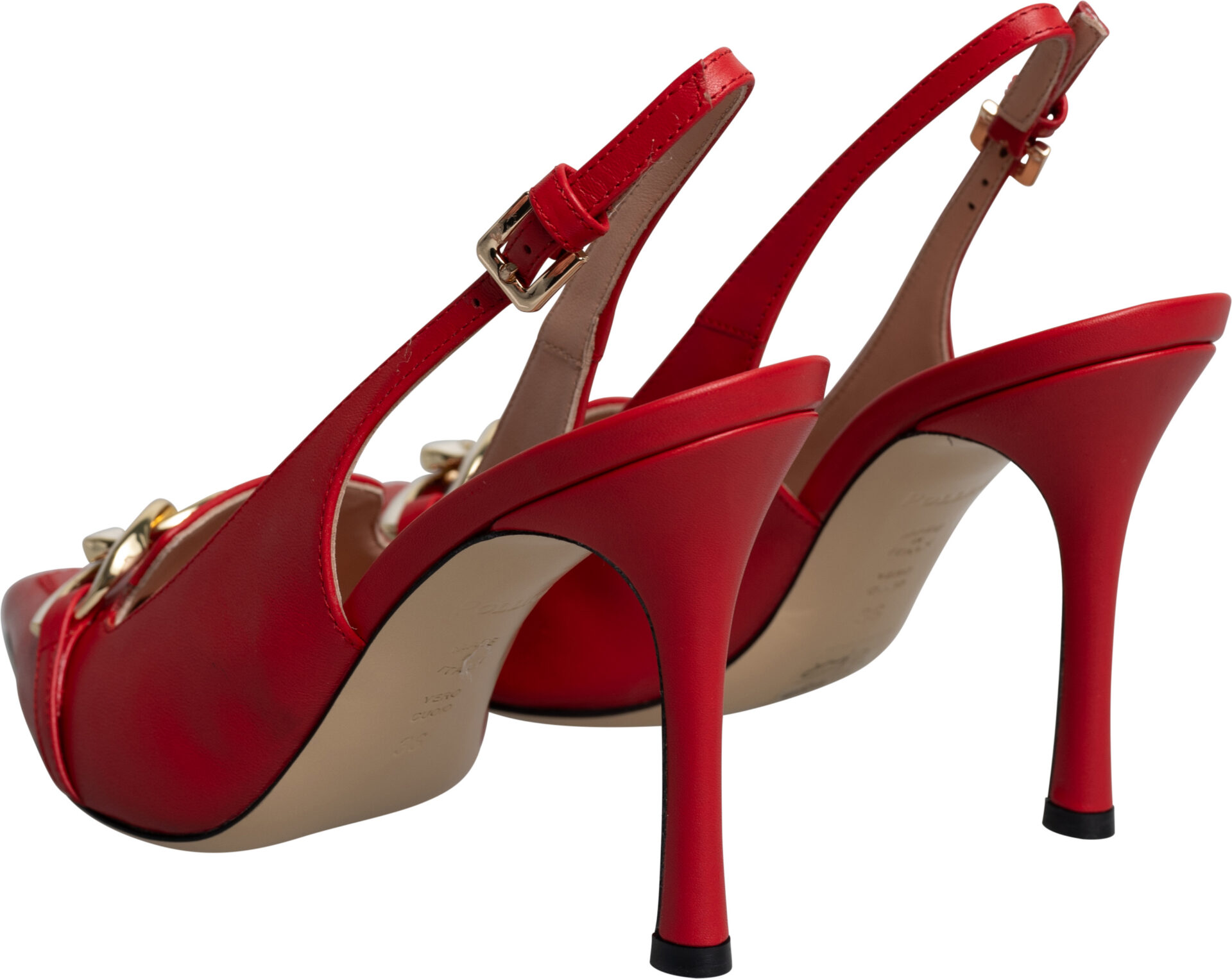Slingback-Pumps aus Glattleder mit Schmuckkette und 9 cm Absatz