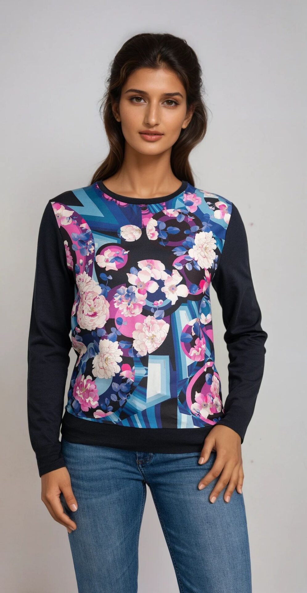 Strickpullover mit Seidenfront